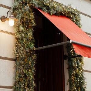 - гармония или интересный контраст с оттенком фасада, либо с уличной мебелью (для кафе);